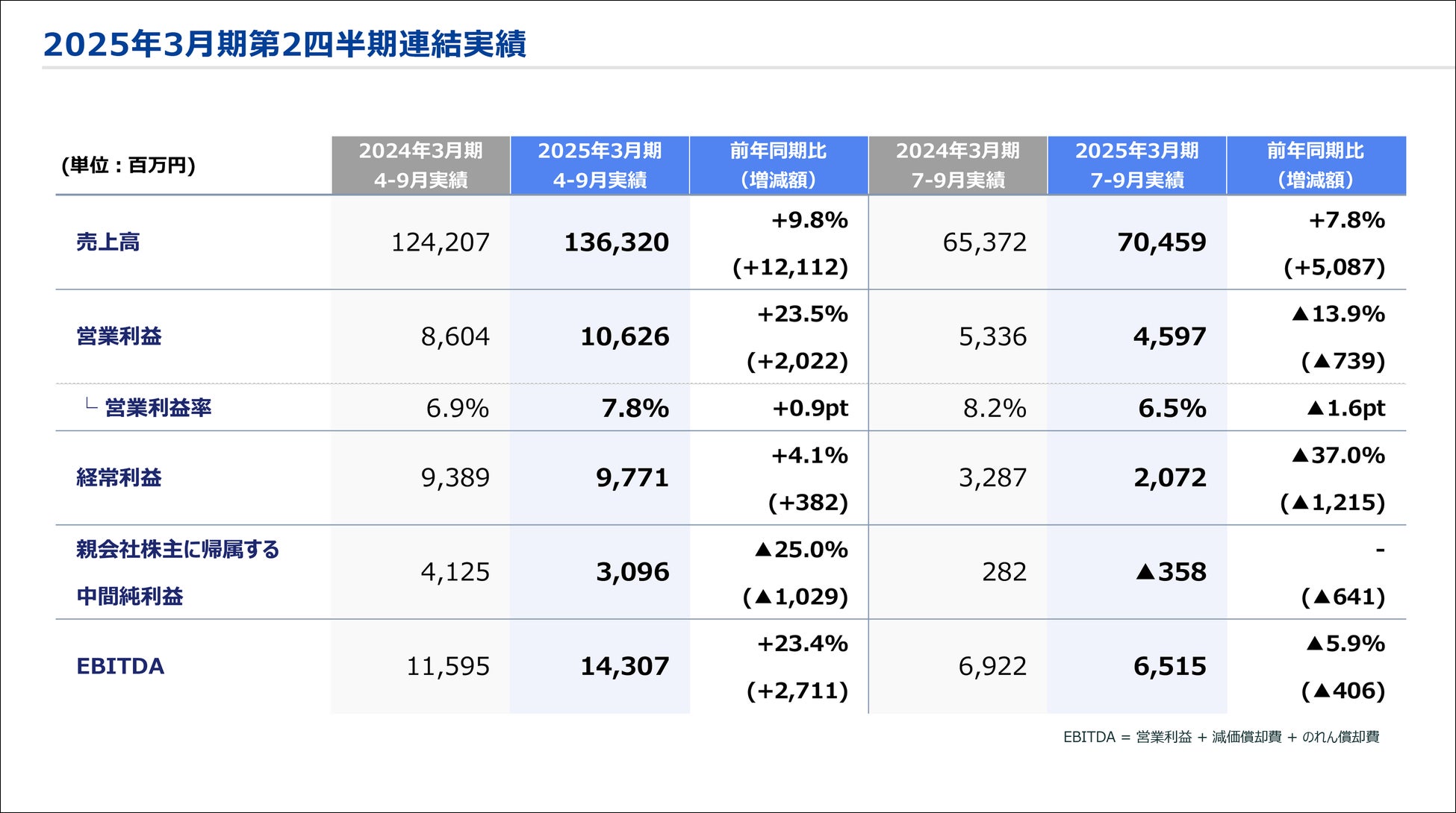 ◆2025年3月期第2四半期連結決算公表 サマリ