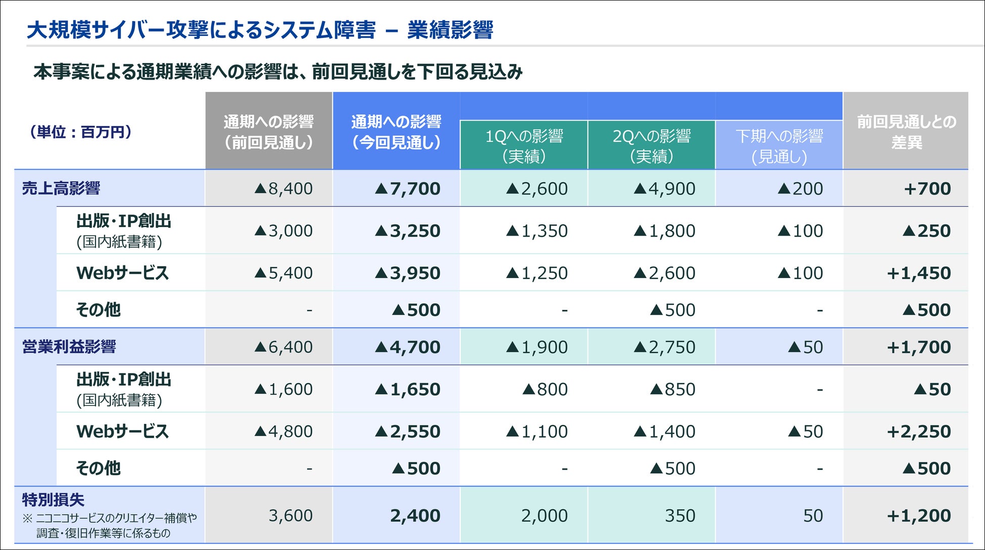 サイバー攻撃事案による事業への影響は、2Qまでに概ね出尽くし