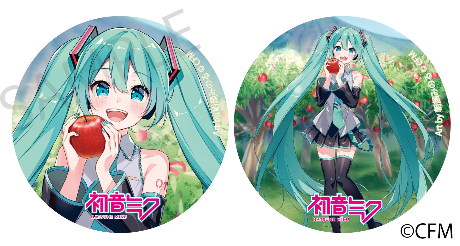 「初音ミク×弘前りんご」 缶バッジ 2種(オープン仕様) 各550円(税込)