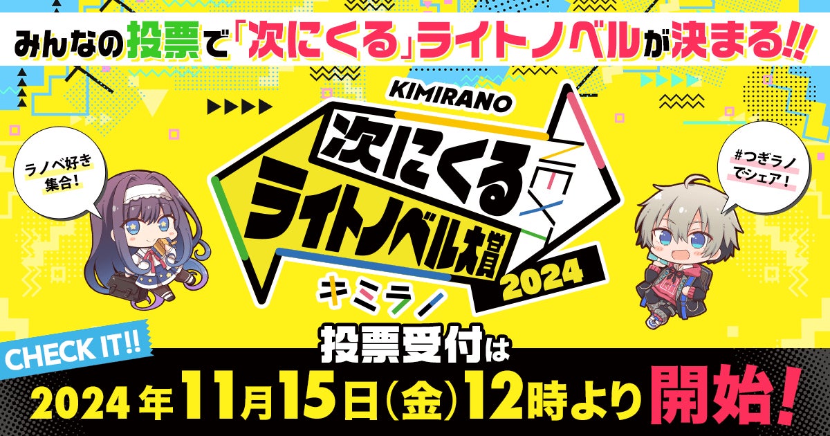 株式会社KADOKAWA(本社:東京都千代田区、取締役 代表執行役社長 CEO:夏野剛、以下KADOKAWA)が運営するライトノベル・新文芸のレコメンドサイト「キミラノ」は、「次にくるライトノベル大賞2024」のノミネート作品を公開し、投票の受付を開始いたしました。