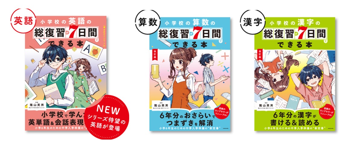 株式会社KADOKAWA(本社:東京都千代田区、取締役 代表執行役社長 CEO:夏野剛)は、陰山英男先生監修による小学生向け総復習ドリル『小学校の英語の総復習が7日間でできる本』『改訂版 小学校の算数の総復習が7日間でできる本』『改訂版 小学校の漢字の総復習が7日間でできる本』の計3冊を2024年11月15日(金)に発売します。