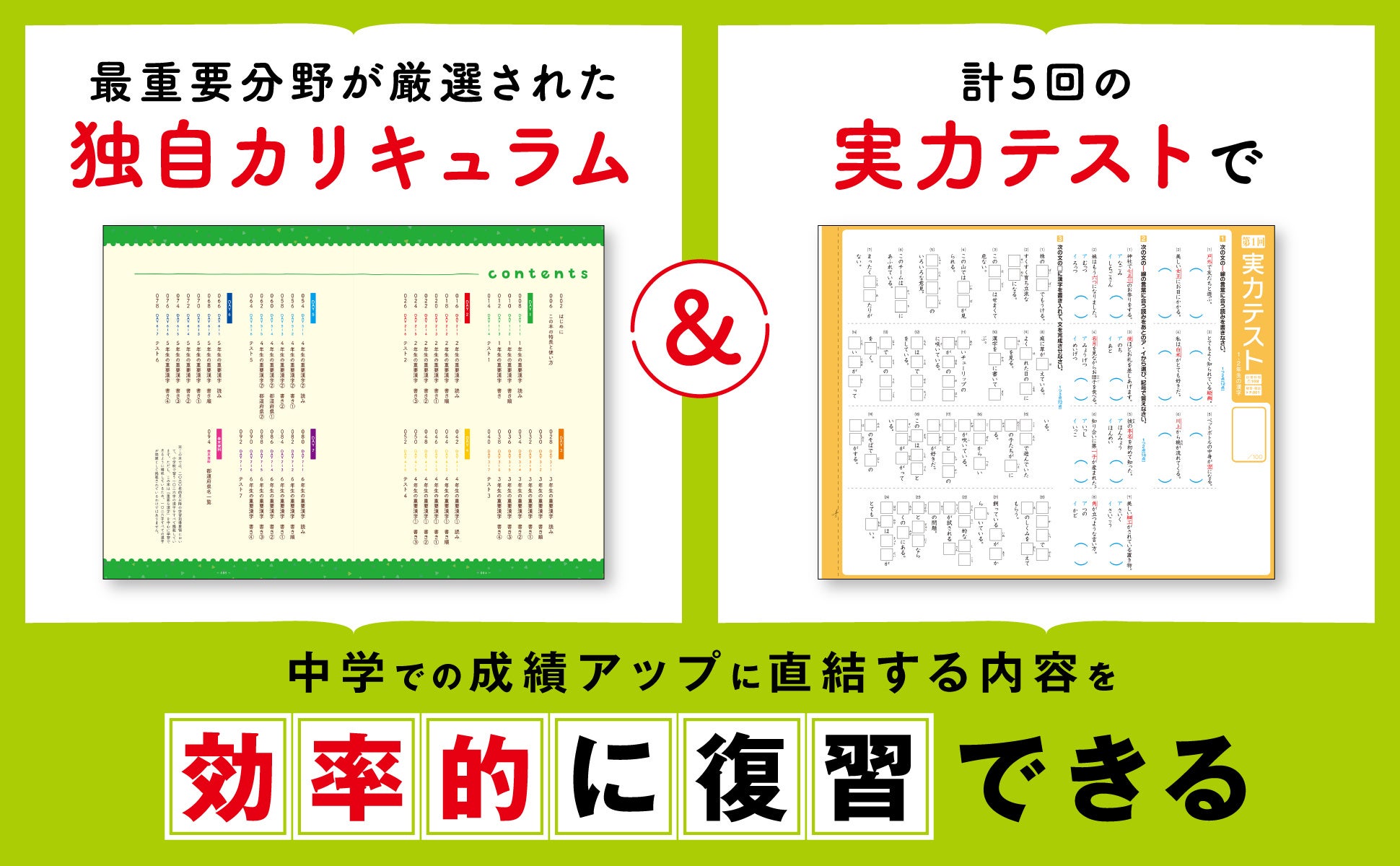 中学校入学までに押さえておくべき重要分野に特化した7日間のカリキュラムで、効率よくおさらいができます。計5回の「実力テスト」で定着度も確認できるようになりました。