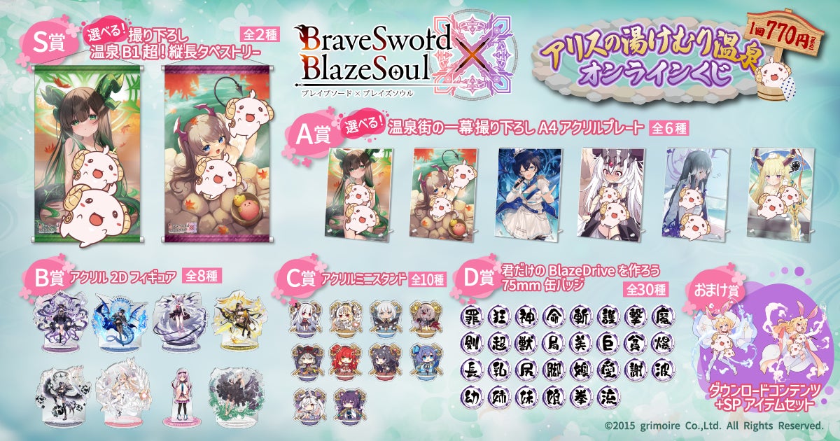 <ブレイブソード×ブレイズソウル アリスの湯けむり温泉 オンラインくじ 概要>