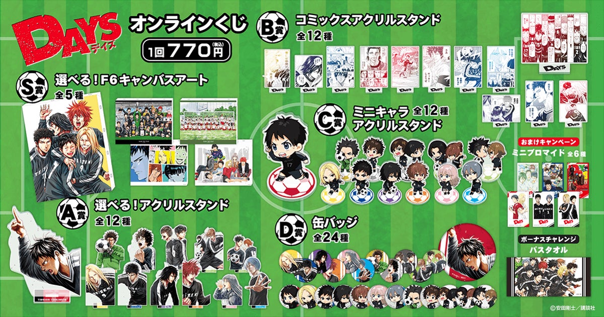 株式会社KADOKAWA(本社:東京都千代田区、取締役 代表執行役社長 CEO:夏野 剛、以下 KADOKAWA)は、運営するオンラインくじサービス「くじ引き堂」において、「DAYS」の原作オリジナル賞品が手に入る<DAYSオンラインくじ>を、2024年11月28日(木)12時より販売します。