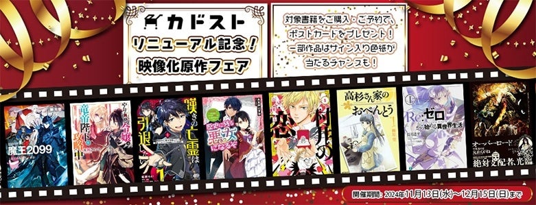 株式会社KADOKAWAが主催・運営するオンラインショッピングサイト「カドスト」がリニューアルオープン。リニューアルを記念した豪華キャンペーンをしています。