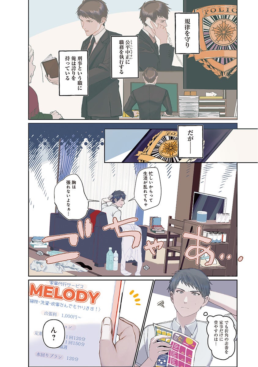 多忙な生活を送る刑事・連城怜(れんじょう・れい)。そんな彼が家事代行サービスを通じて出会ったのは、美しい男子大学生・三上光弥(みかみ・みつや)だった。