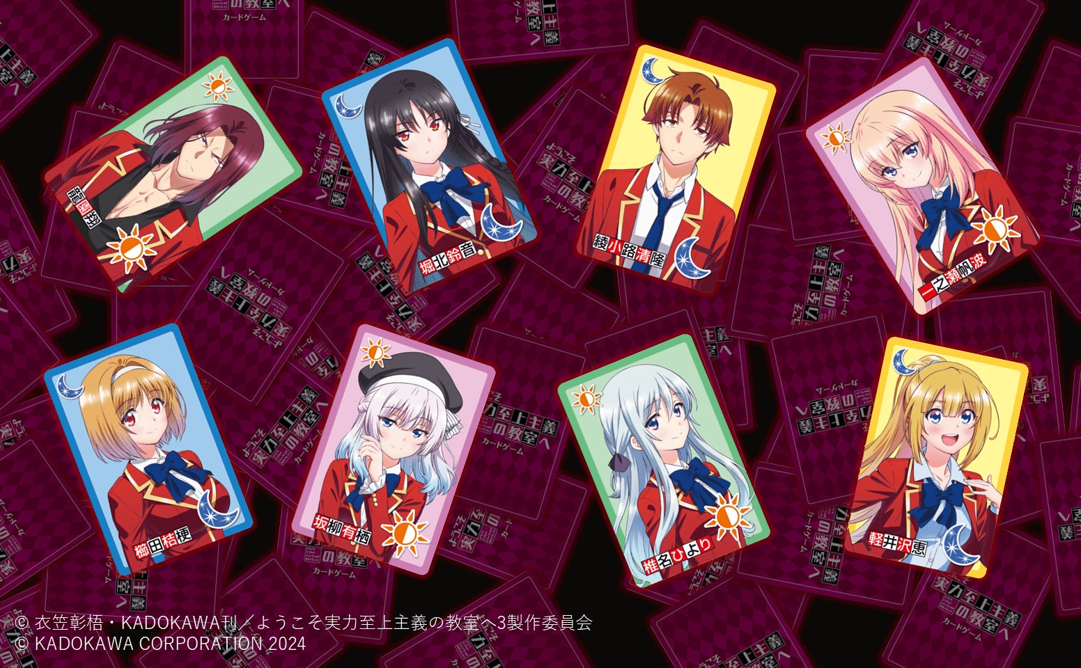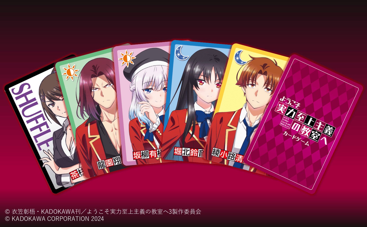 株式会社KADOKAWA(本社:東京都千代田区、取締役 代表執行役社長 CEO:夏野剛、以下 KADOKAWA)は、アナログゲームブランド「カドアナ」から、2025年1月31日(金)発売予定の『ようこそ実力至上主義の教室へ カードゲーム』店舗購入特典の情報を公開いたします。