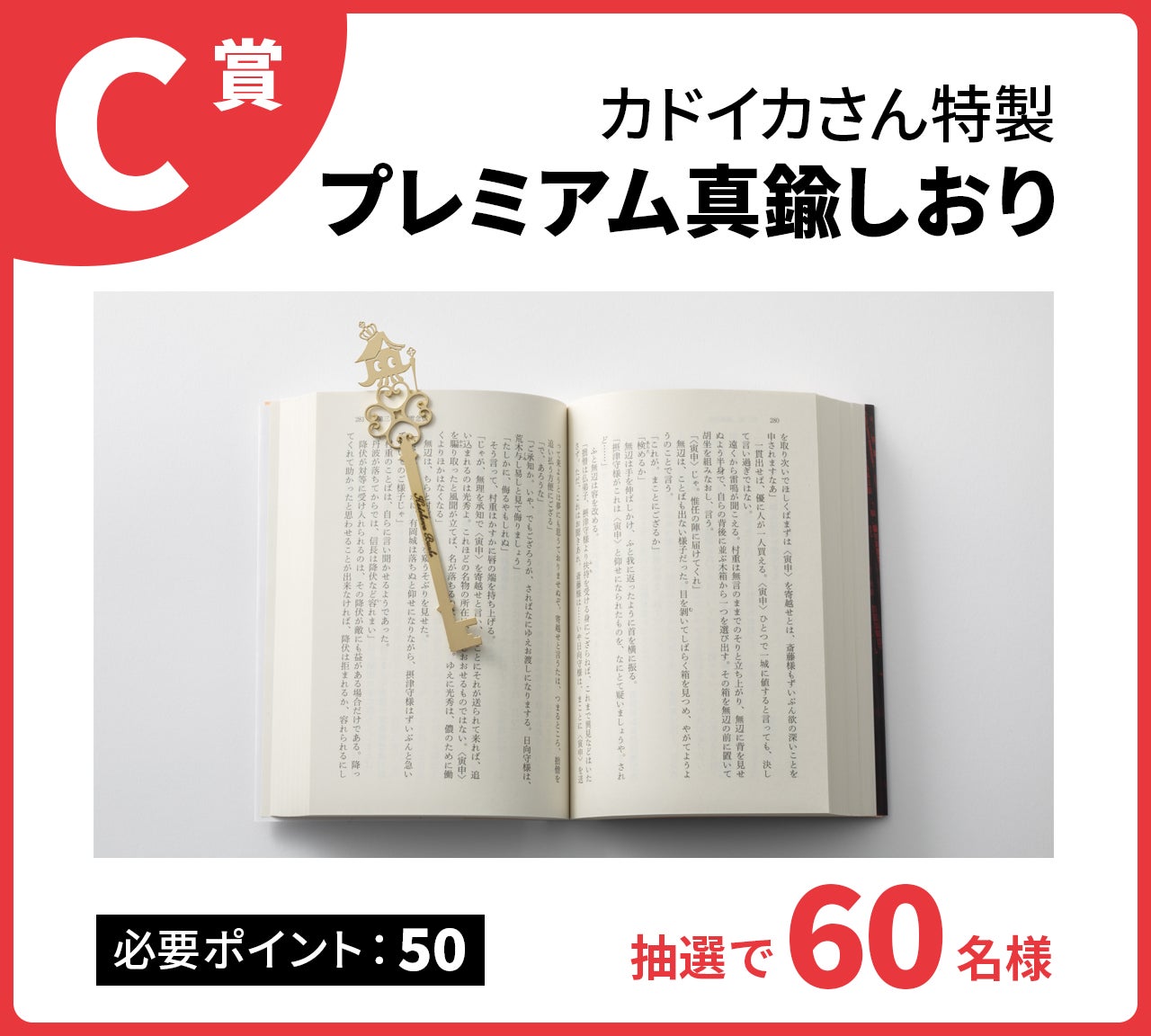 KADOKAWAアプリでは購入書籍1冊ごとに本体価格の10%分のポイントを獲得できます(小数点以下は四捨五入)。また、各賞の必要ポイント数をためると複数プレゼントに応募いただけます。