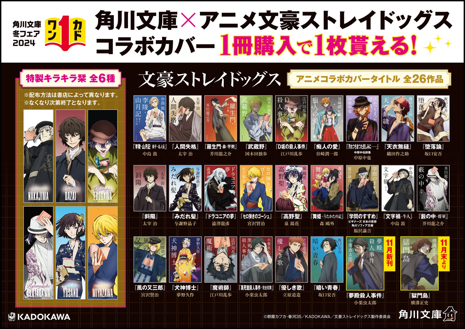 アニメ「文豪ストレイドッグス」×角川文庫コラボカバー作品を1冊買うと特製キラキラ栞が1枚もらえます!