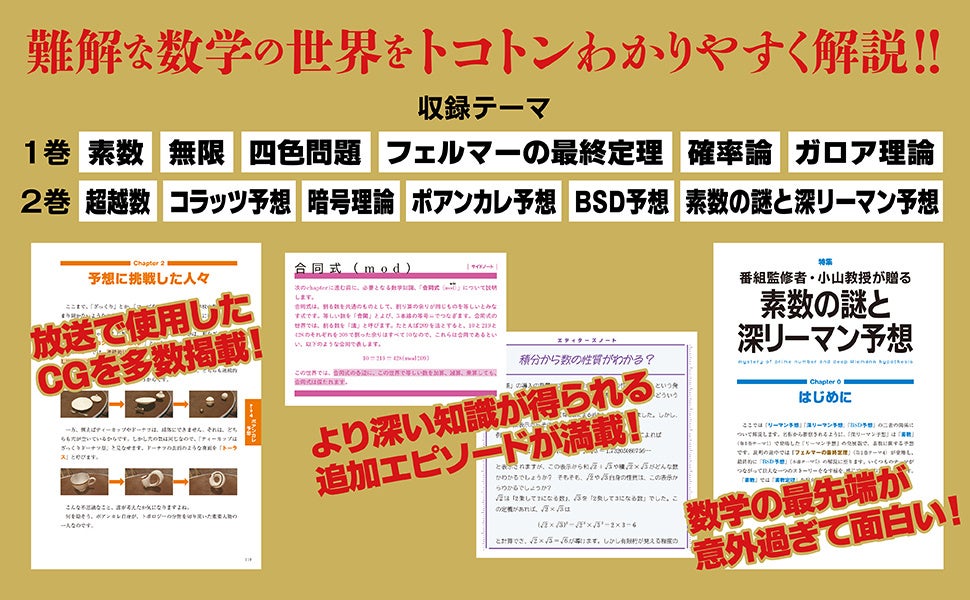 さらに、番組監修者である東洋大学 小山信也教授が「特集 素数の謎と深リーマン予想」というタイトルで、ミレニアム懸賞問題である超難問「リーマン予想」と「BSD予想」が実は繋がりがあるという最新研究の一端を紹介。