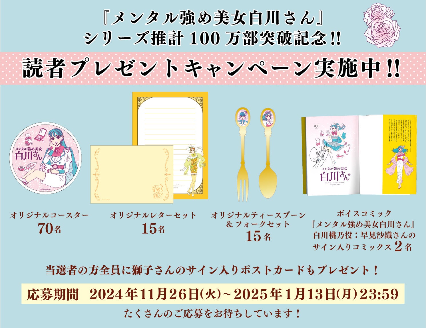 現在、シリーズ累計100万部突破を記念して、2024年11月26日(火)より読者プレゼントキャンペーンを実施中です!