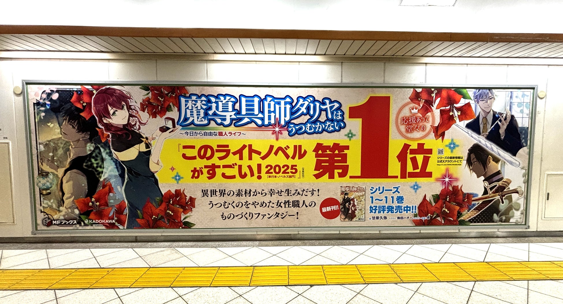 株式会社KADOKAWA(本社:東京都千代田区、取締役 代表執行役社長 CEO:夏野剛)の新文芸レーベル「MFブックス」より発売している『魔導具師ダリヤはうつむかない ~今日から自由な職人ライフ~』が、宝島社発行のライトノベルガイドブック『このライトノベルがすごい!2025(宝島社刊)』にて「単行本・ノベルズ部門1位」獲得を記念し、池袋駅と山形駅に交通広告を掲出することをご報告いたします。