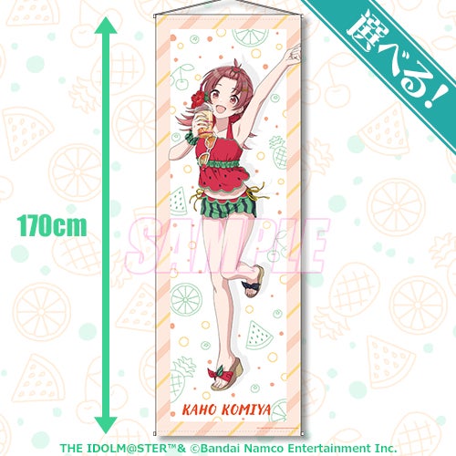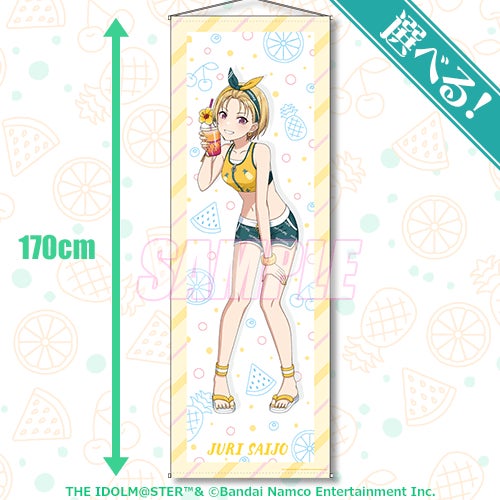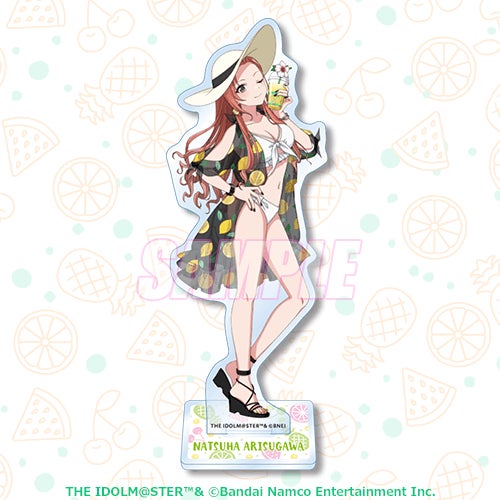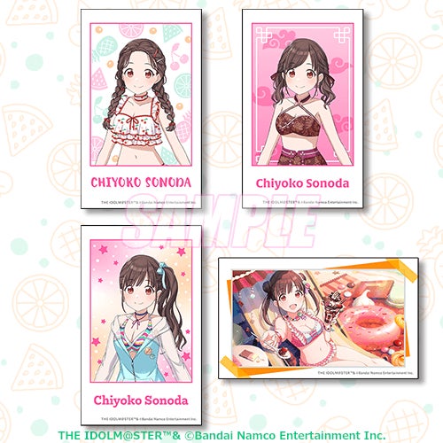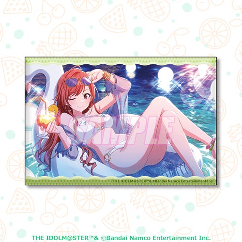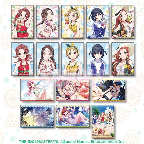 商品は水着衣装に身を包み、ユニット別スタイルブックの表紙にもなった「小宮果穂」「園田智代子」「西城樹里」「杜野凛世」「有栖川夏葉」の特大タペストリーやアクリルスタンドのほか、バッグの中身ページで紹介されたアイドルたちが持ち歩いている愛用品のイラストを使用した3個セットのアクリルミニチャーム、ゲーム内で使用された歴代の水着イラストやカードイラストを使用したミニブロマイドセットやスクエア缶バッジ等、オリジナルグッズを多数展開しております。
