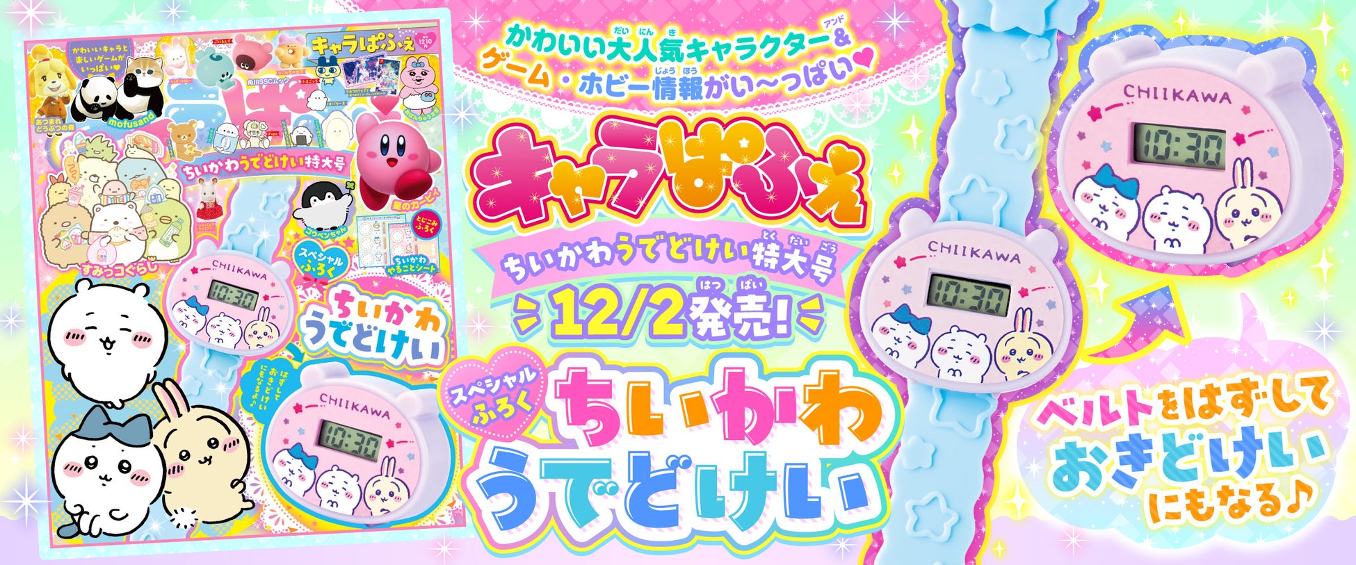 スペシャルふろくは「ちいかわ うでどけい」! カワイイものがもりだくさんのキャラクター&ゲームのムック『キャラぱふぇ』最新号が発売♪