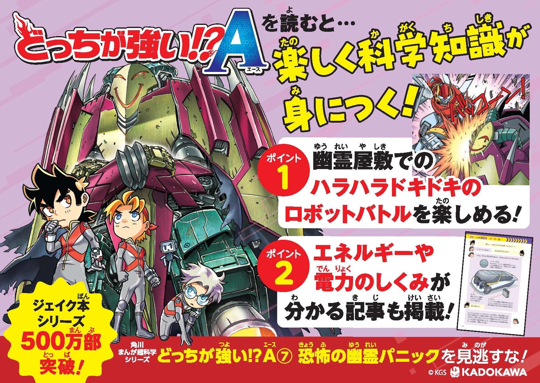 株式会社KADOKAWA(本社:東京都千代田区、取締役 代表執行役社長 CEO:夏野剛)は、角川まんが超科学シリーズ『どっちが強い!?A(7) 恐怖の幽霊パニック』(ストーリー:レッドコード/べオン、まんが:エアーチーム、監修:早稲田大学大学院 環境・エネルギー研究科)を2024年12月11日(水)に発売します。また、7巻発売を記念し BOOK☆WALKERにて既刊全6巻を無料で公開いたします。