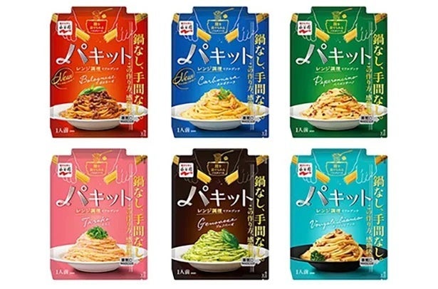 1人前のパスタが手間なく完成する新感覚のパスタソース「パキット」を、6種セットでプレゼント。袋の中に麺を折り入れて、レンジでチンして混ぜるだけで完成。麺とソースを一度に調理できて、後片付けもラクラクです。さらに、アルデンテ食感のパスタに濃厚ソースがよく絡み、味も本格的。へとへとな時の救世主です!