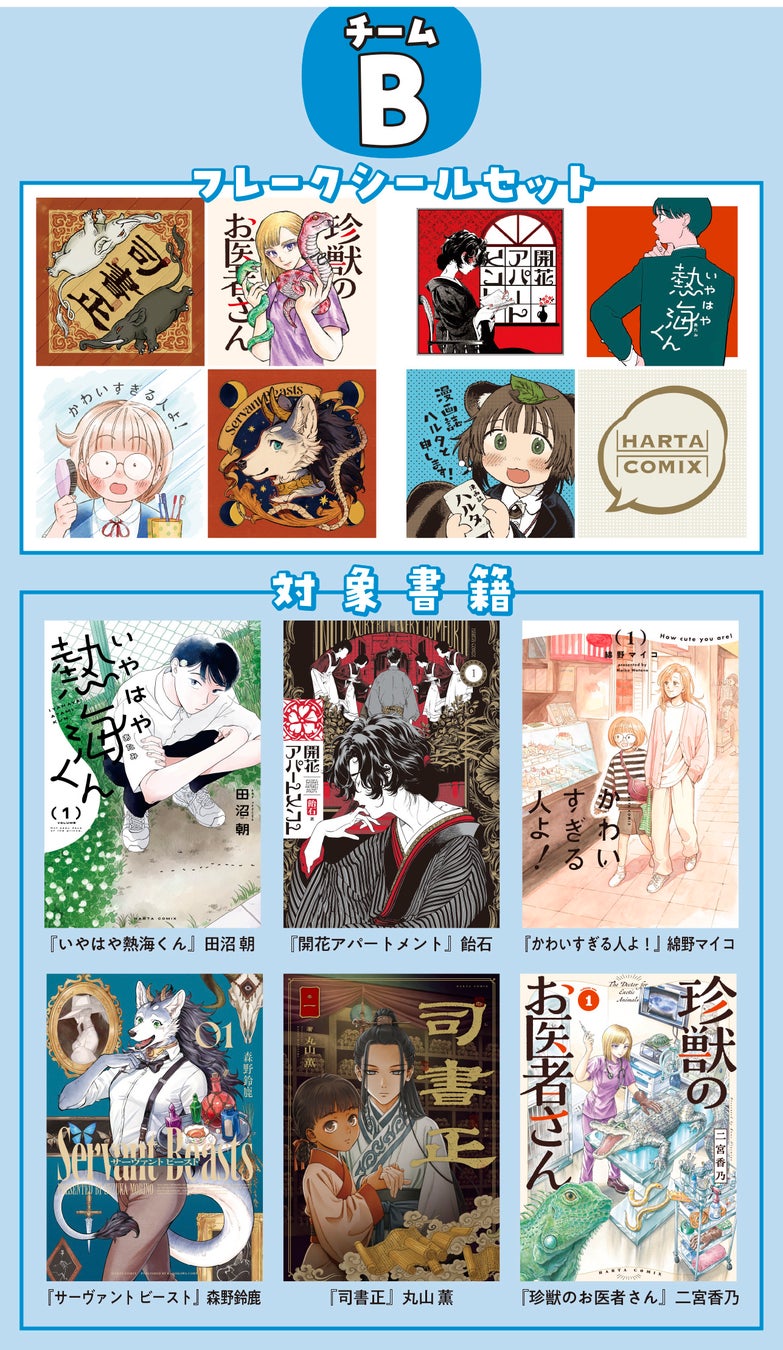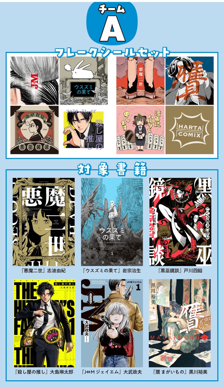 対象書籍と封入されるシールはAチーム‧Bチームに分かれています。
