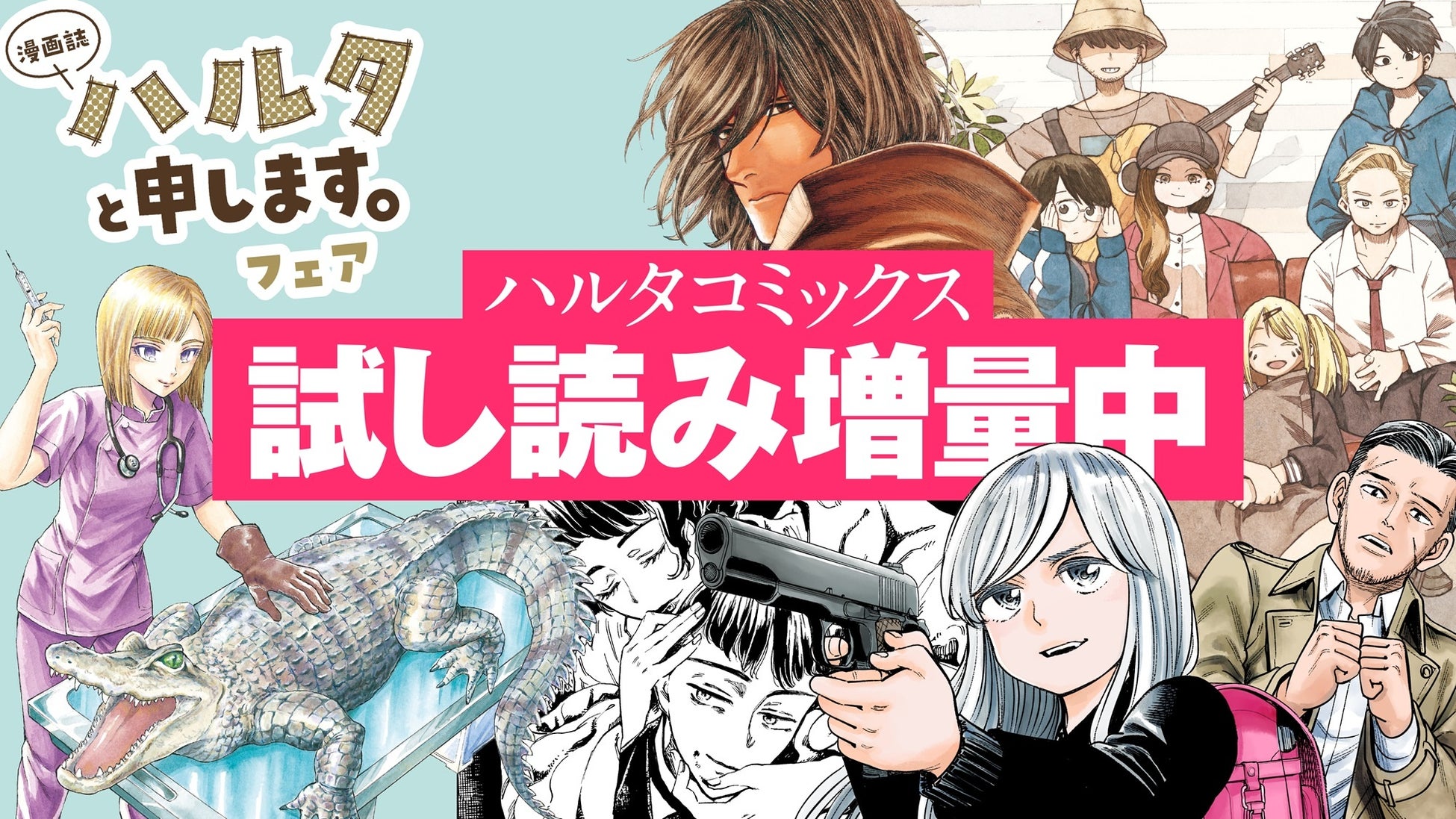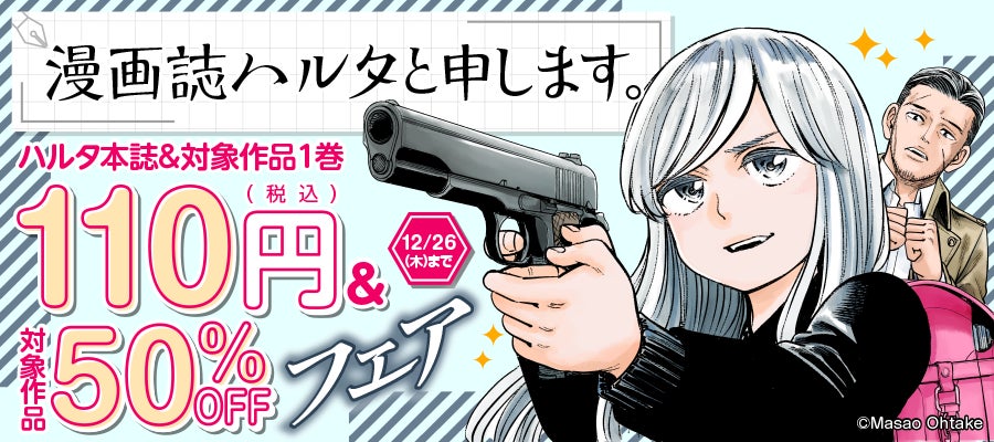 電子書籍ストアでは対象商品が1巻110円(税込)、続刊は50%OFFで購入可能。リアル書店では対象商品を購入すると、必ずもらえるフレークシールや抽選でハルタ作家描きおろし色紙が当たるフェアを開催中!