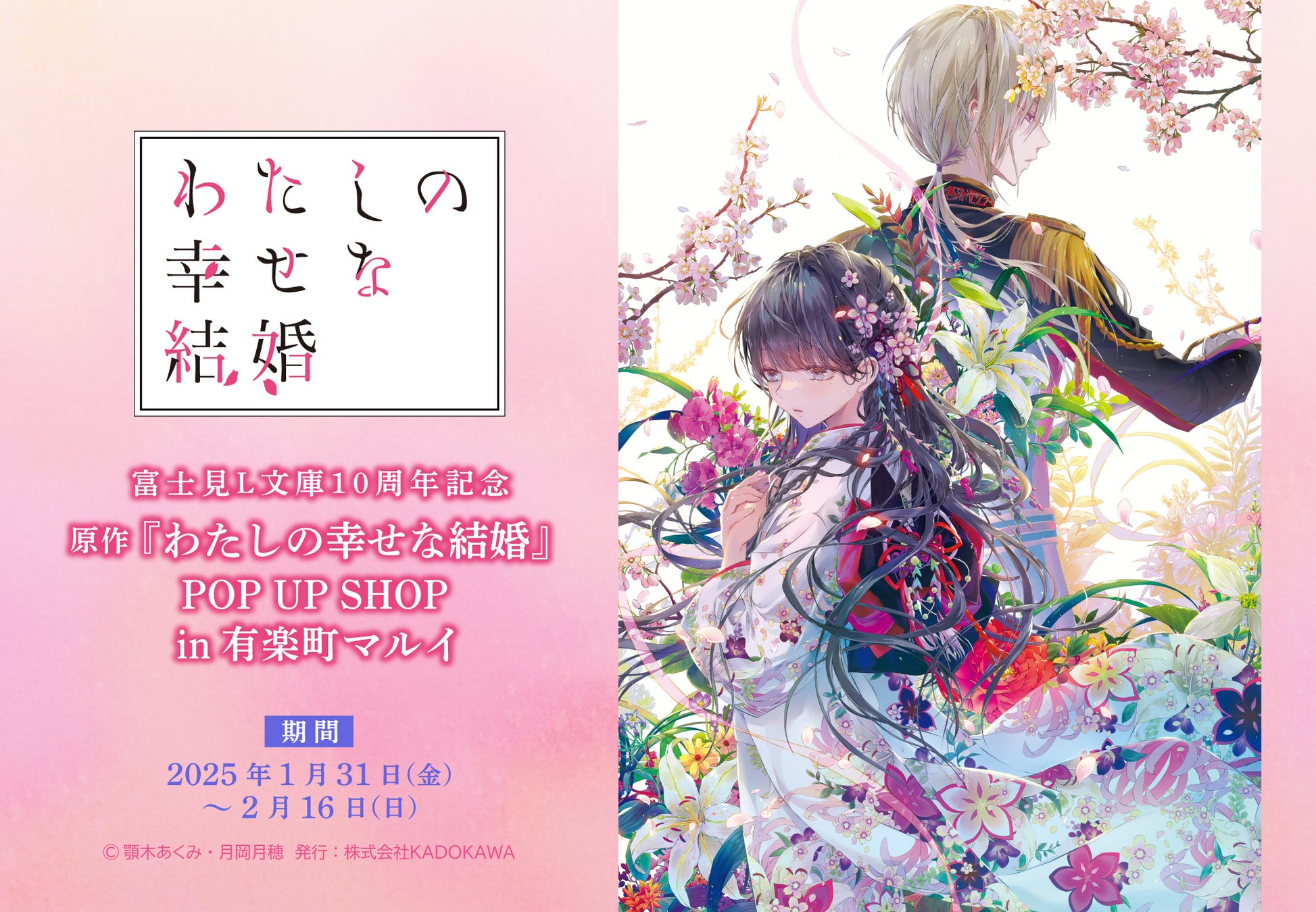 株式会社KADOKAWA(本社:東京都千代田区、 取締役 代表執行役社長 CEO:夏野剛)は、富士見L文庫10周年を記念して、人気小説シリーズ『わたしの幸せな結婚』のPOPUP SHOPを、2025年1月31日(金)~2月16日(日)の期間で有楽町マルイにて開催いたします。