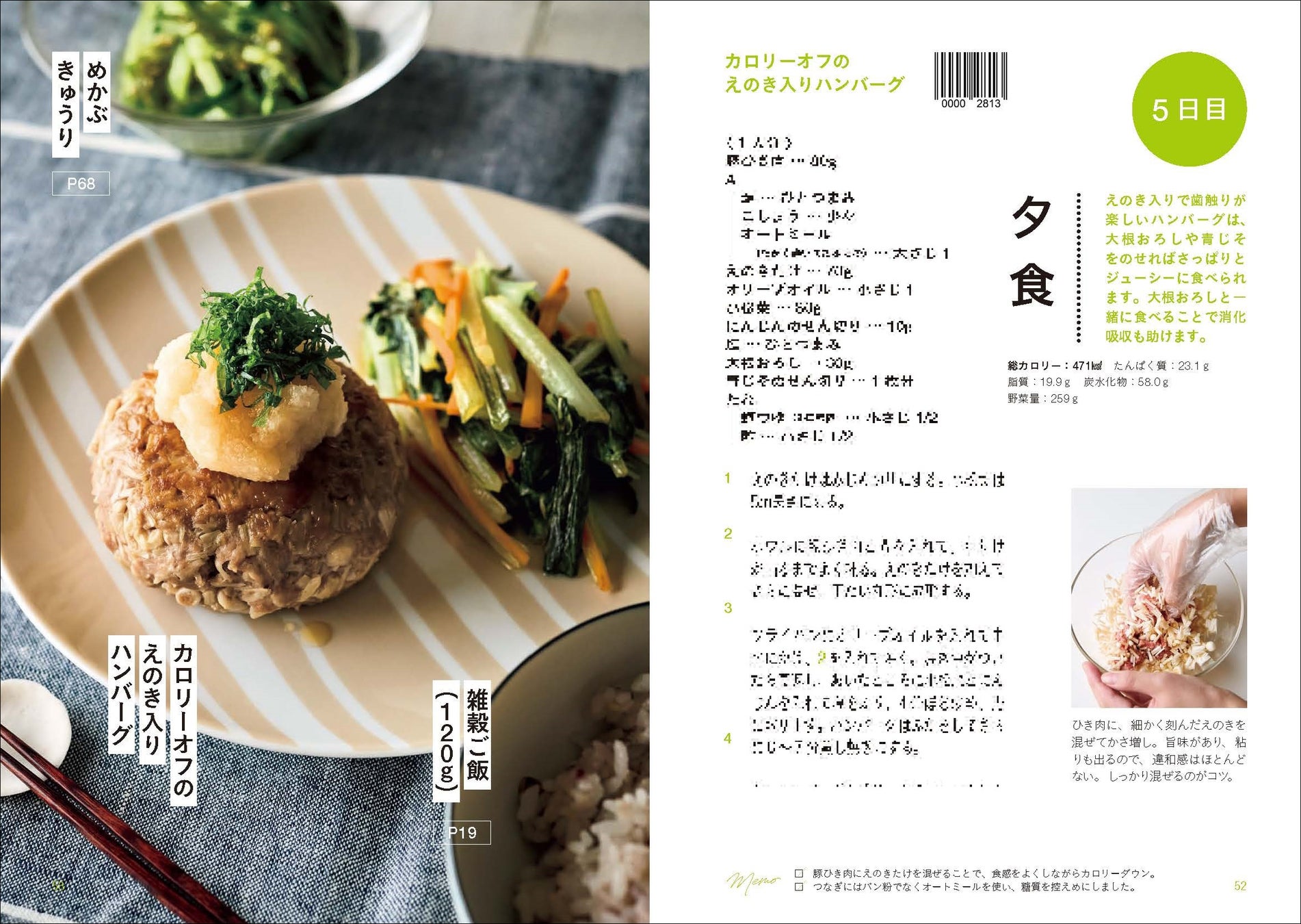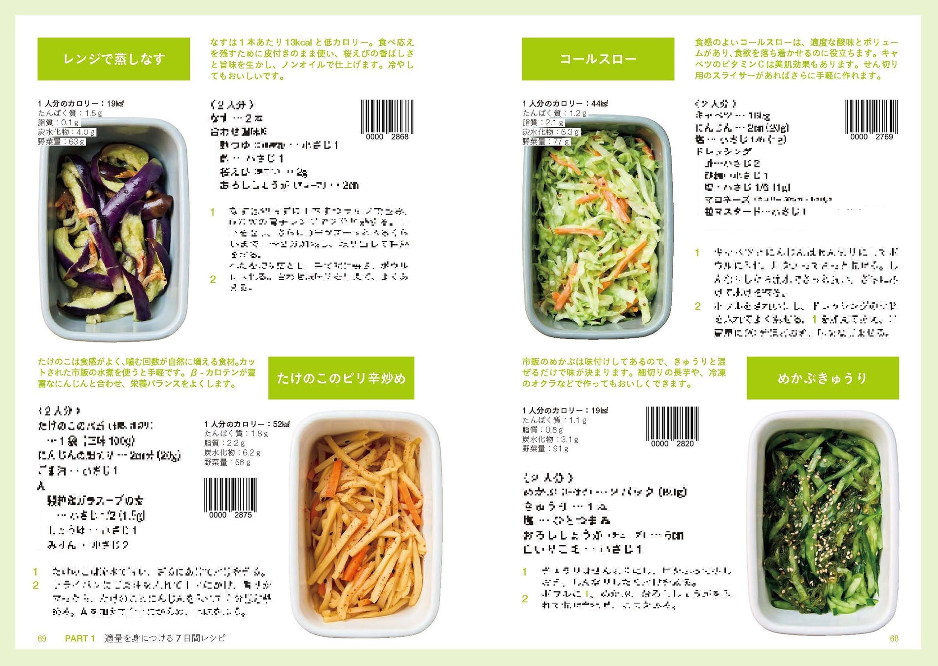 本書では、『あすけん』の管理栄養士が考えた、ダイエットを始めるときに作って食べたい朝昼晩の7日間のレシピを紹介。この7日間で、「適量」の食材と量、調理法を身につけます。