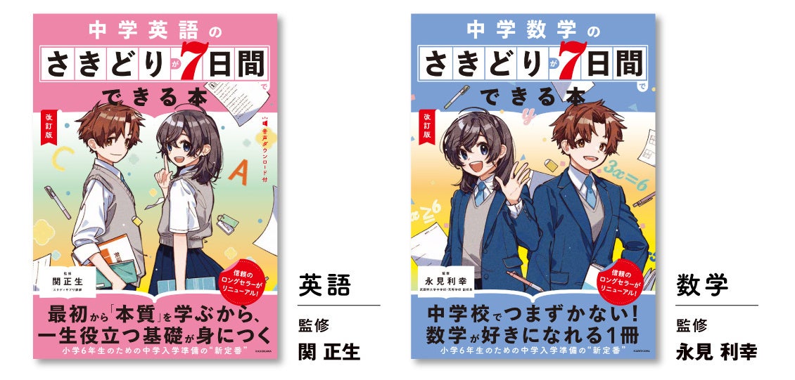 中学校の「英語」「数学」の大事なポイントをスピーディーにさきどり! ロングセラー『改訂版 中学英語のさきどりが7日間でできる本』『改訂版 中学数学のさきどりが7日間でできる本』2冊同時発売