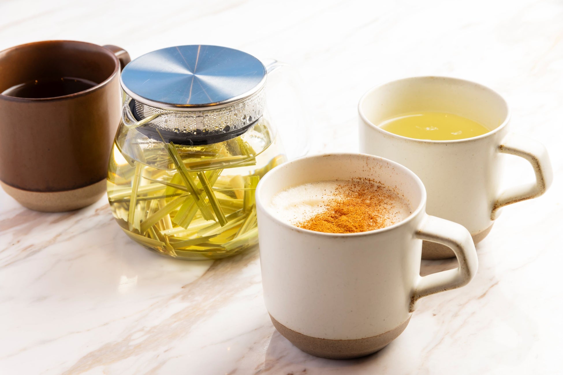 (左から右の順に)レモングラスティー、角川食堂オリジナルチャイ、ホットレモネード