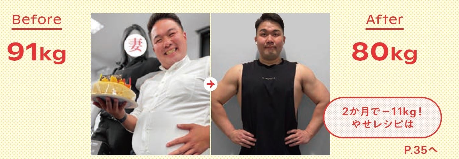 もう1つ、やせうまレシピであることに加えて、食べ応え満点なのにダイエット向きでヘルシーなことも人気のヒミツだと考えています。こんにゃくや豆腐、野菜、きのこなどを使ったレシピを食べて、実際に2か月で体重が11kgもダウンしました。空腹に我慢することなくおいしくて満足できるので、気づいたらお腹の脂肪も減り見た目が変わって、妻も喜んでくれました。