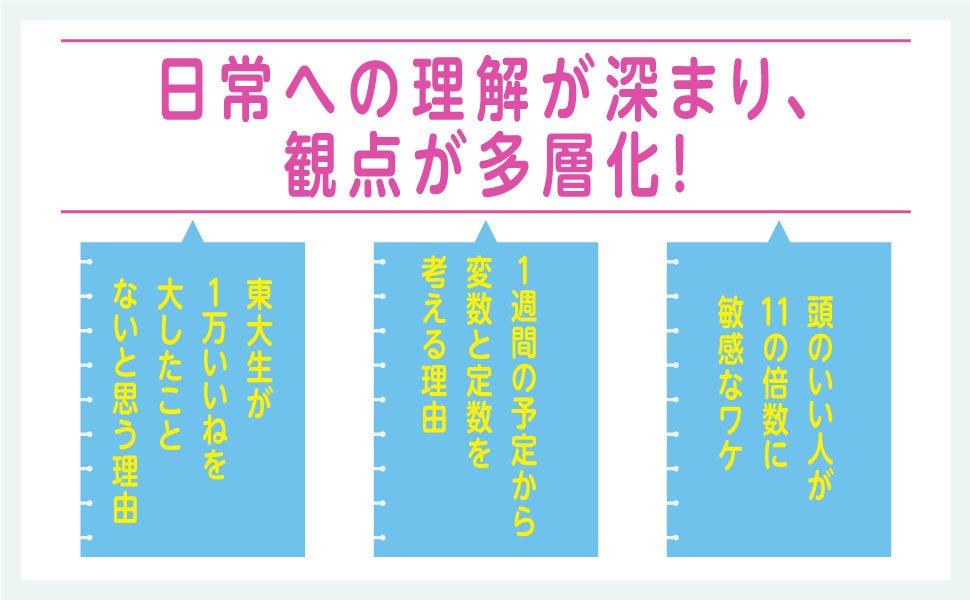 探求心を持つと、何気なく目にしている言葉にも「この定義って何だろう?」と疑問を抱き、新たな発見が生まれます。日常生活で「なぜ?」と問い続け、その答えをつなぎ合わせることで、連続的な学びを得ているのです。つまり、頭のいい人は脳内で〈学習の自動化〉を実現しているのです!