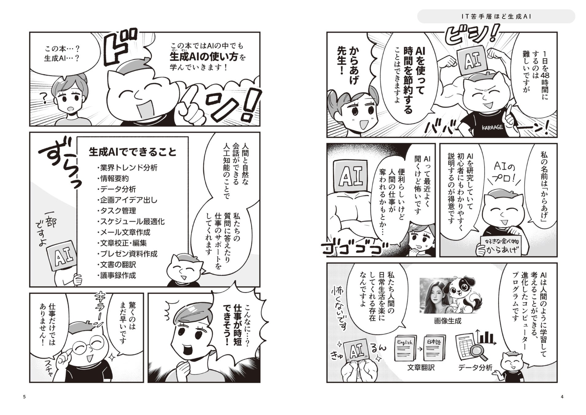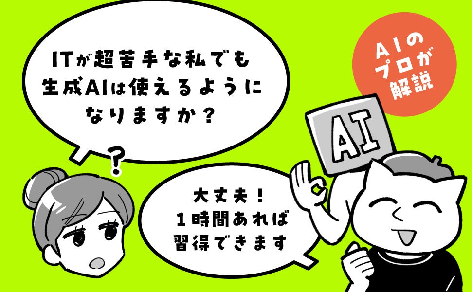 【マンガと図解でかんたん理解!】AIのプロが解説する、ずっと役立つ生成AI基本の書が登場。本書の知識が、いそがしいあなたを全面サポート!
