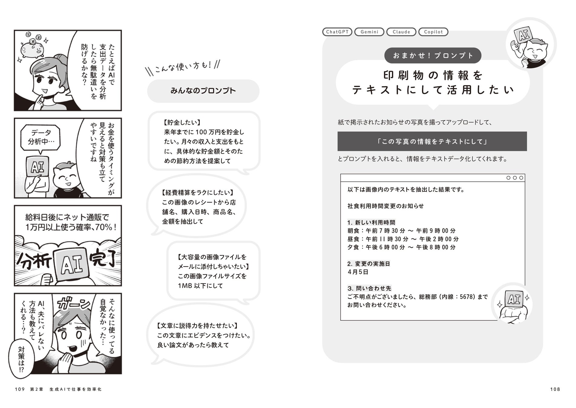 本書は、生成AIを全く使ったことのないど素人の方に、登録の仕方から使い方まで、AIの専門家が手取り足取り活用法をすべて教える1冊です。