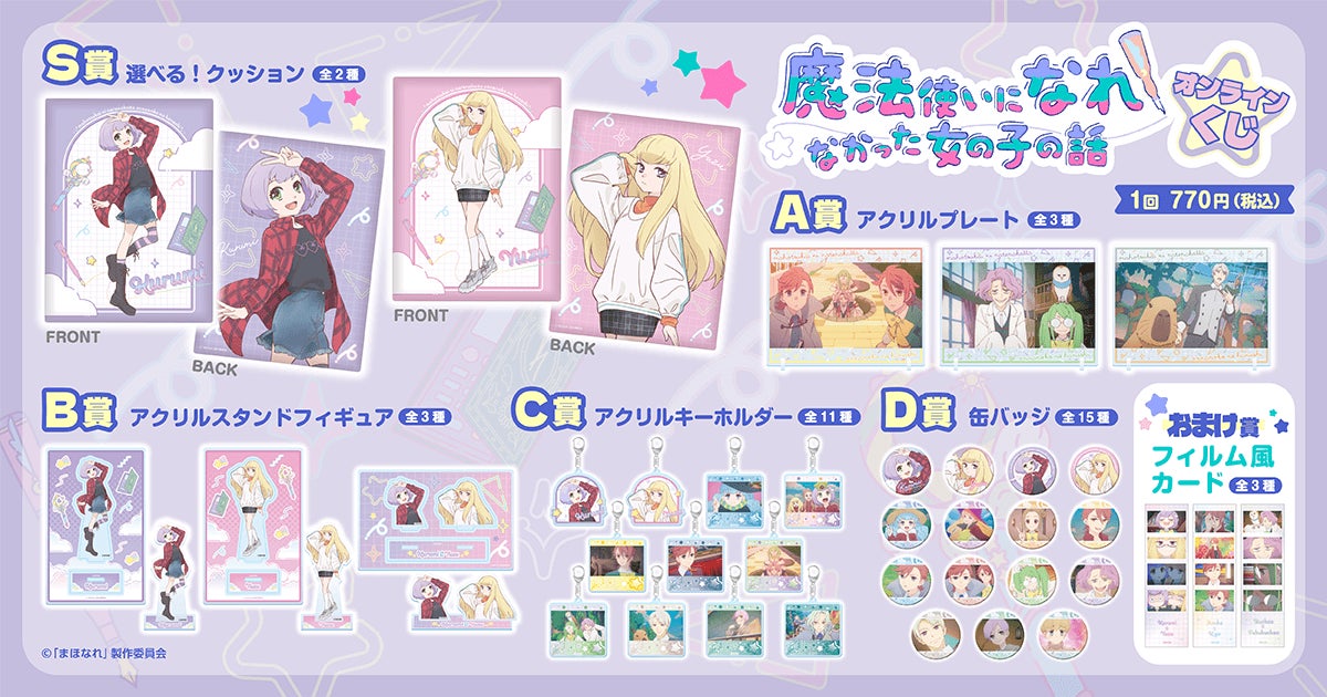 株式会社KADOKAWA(本社:東京都千代田区、取締役 代表執行役社長 CEO:夏野 剛、以下 KADOKAWA)は、運営するオンラインくじサービス「くじ引き堂」において、オリジナルTVアニメ「魔法使いになれなかった女の子の話」の豪華賞品が手に入る<魔法使いになれなかった女の子の話 オンラインくじ>を、2025年1月30日(木)12時より販売します。
