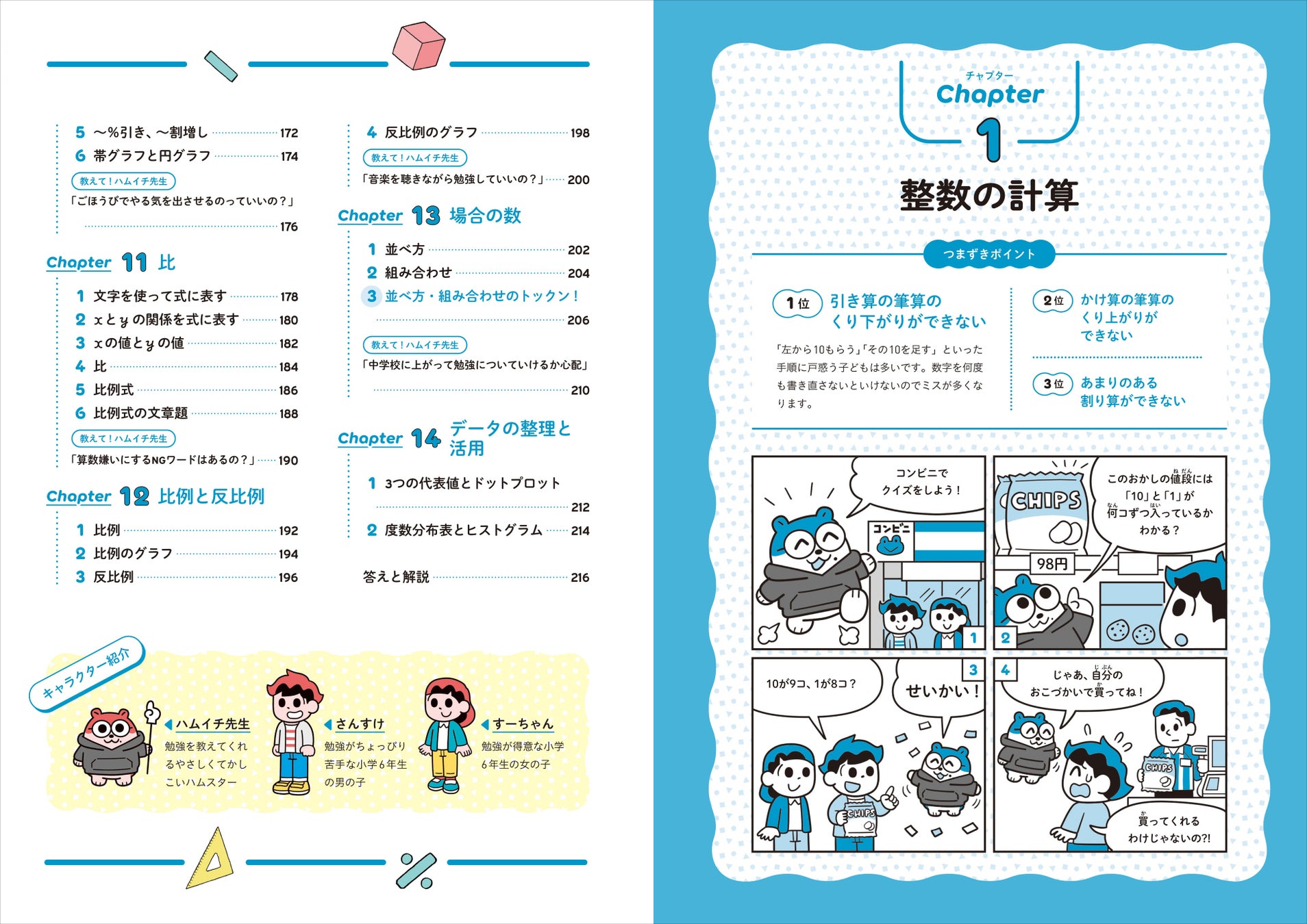 本書は、著書累計発行部数25万部超、YouTubeチャンネル登録者数200万人超の教育YouTuber・葉一(はいち)による、小学校算数6年分を1冊で総復習できる家庭学習用のワークブックです。