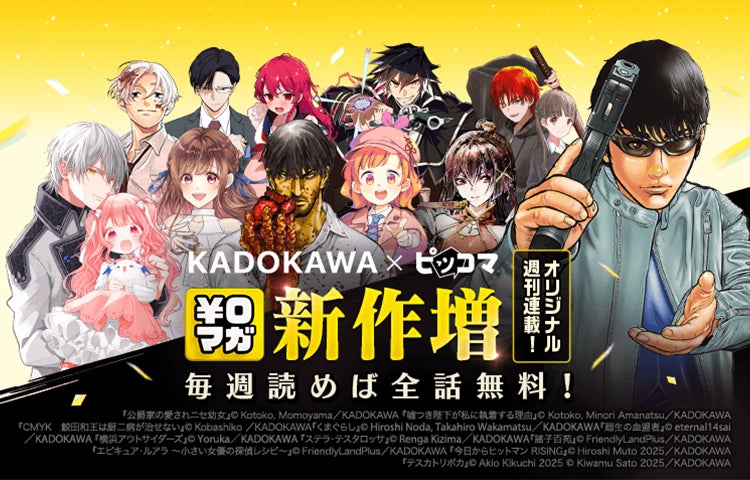 株式会社KADOKAWA(取締役 代表執行役社長 CEO:夏野剛、本社:東京都千代田区)は、2024年12月16日(月)、株式会社カカオピッコマ(本社:東京都港区、代表取締役社長:金在龍)と共同開発した新しい電子マンガマガジン「MANGAバル」内にて、新たに4本の作品を新連載第2弾として2025年1月28日(火)より順次連載を開始いたします。