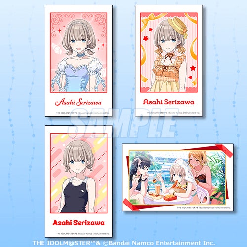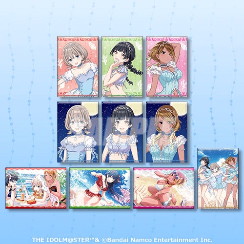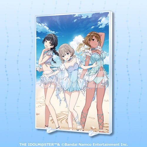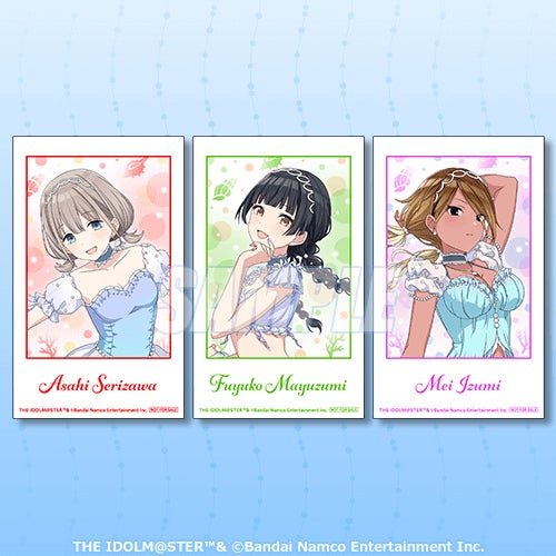商品は水着衣装に身を包み、ユニット別スタイルブックの表紙にもなった「芹沢あさひ」「黛 冬優子」「和泉愛依」の特大タペストリーやアクリルスタンドのほか、バッグの中身ページで紹介されたアイドルたちが持ち歩いている愛用品のイラストを使用した3個セットのアクリルミニチャーム、ゲーム内で使用された歴代の水着イラストやカードイラストを使用したミニブロマイドセットやスクエア缶バッジ等、オリジナルグッズを多数展開しております。