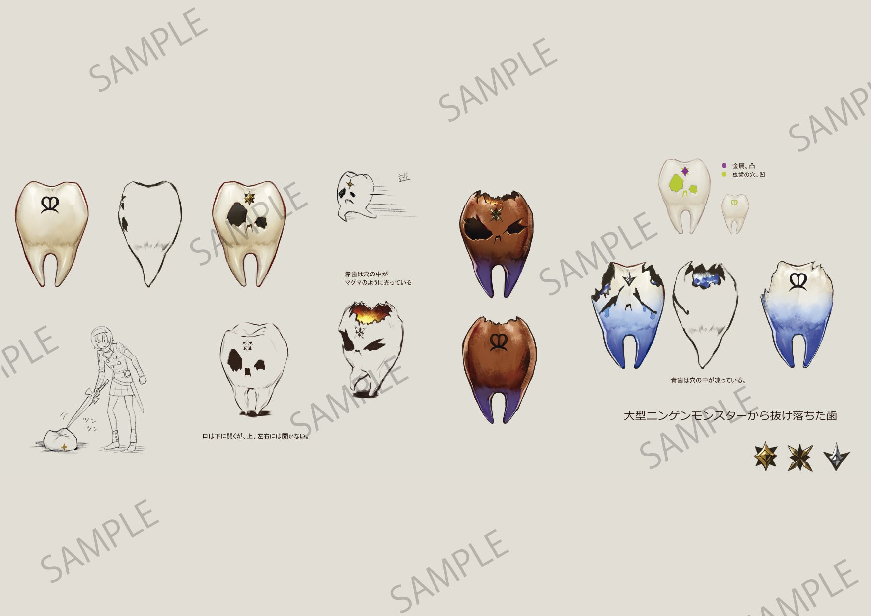 本展覧会のオリジナルグッズの一部を公開。キービジュアルやファミ通表紙イラスト、描き下ろしイラストなどの美麗なイラストを楽しめるグッズ類をはじめ、新規イラストのホモ・テンタがデザインされた歯ブラシスタンドなど、ユニークなアイテムもラインナップ。