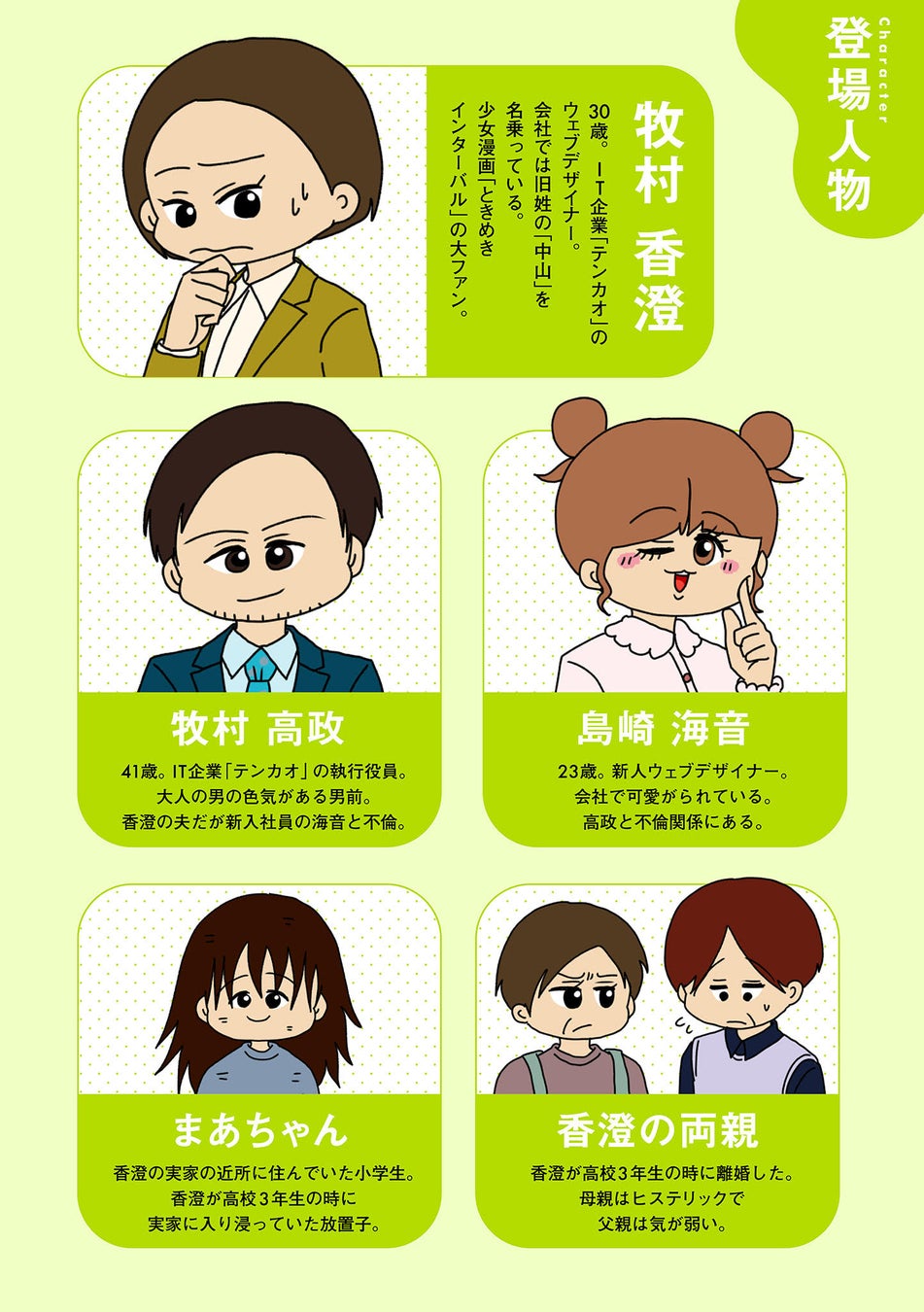 11歳年上の高政と社内結婚した主人公・香澄はある日、インスタグラムに投稿された半裸の女の写真を発見する。