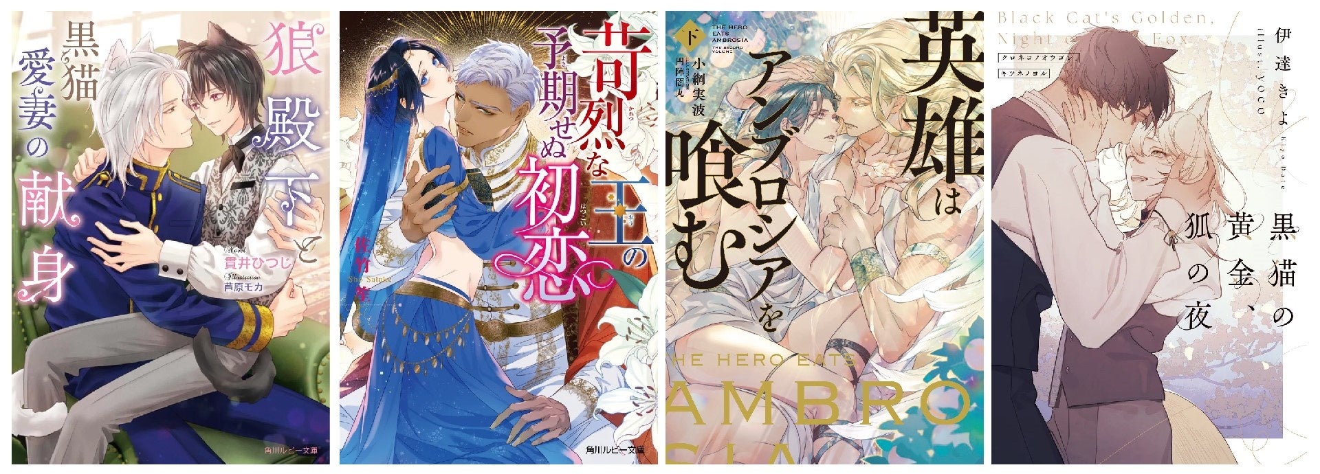 株式会社KADOKAWA(本社:東京都千代田区、取締役 代表執行役社長 CEO:夏野剛)は、ルビ―文庫より発売中の『狼殿下と黒猫愛妻の献身』『苛烈な王の予期せぬ初恋』、ルビー文庫発の本格ファンタジーBL小説単行本レーベル「Ruby collection」より発売中の『英雄はアンブロシアを喰む 下』『黒猫の黄金、狐の夜』以上4作品が「BLアワード2025 小説部門」にノミネートされたことを発表いたします。