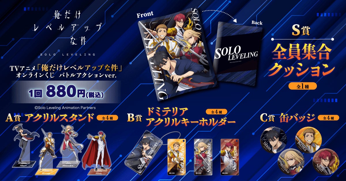 株式会社KADOKAWA(本社:東京都千代田区、取締役 代表執行役社長 CEO:夏野 剛、以下 KADOKAWA)は、運営するオンラインくじサービス「くじ引き堂」において、TVアニメ『俺だけレベルアップな件』の豪華賞品が手に入る<TVアニメ「俺だけレベルアップな件」オンラインくじ バトルアクションver.>を、2025年2月13日(木)12時より販売します。