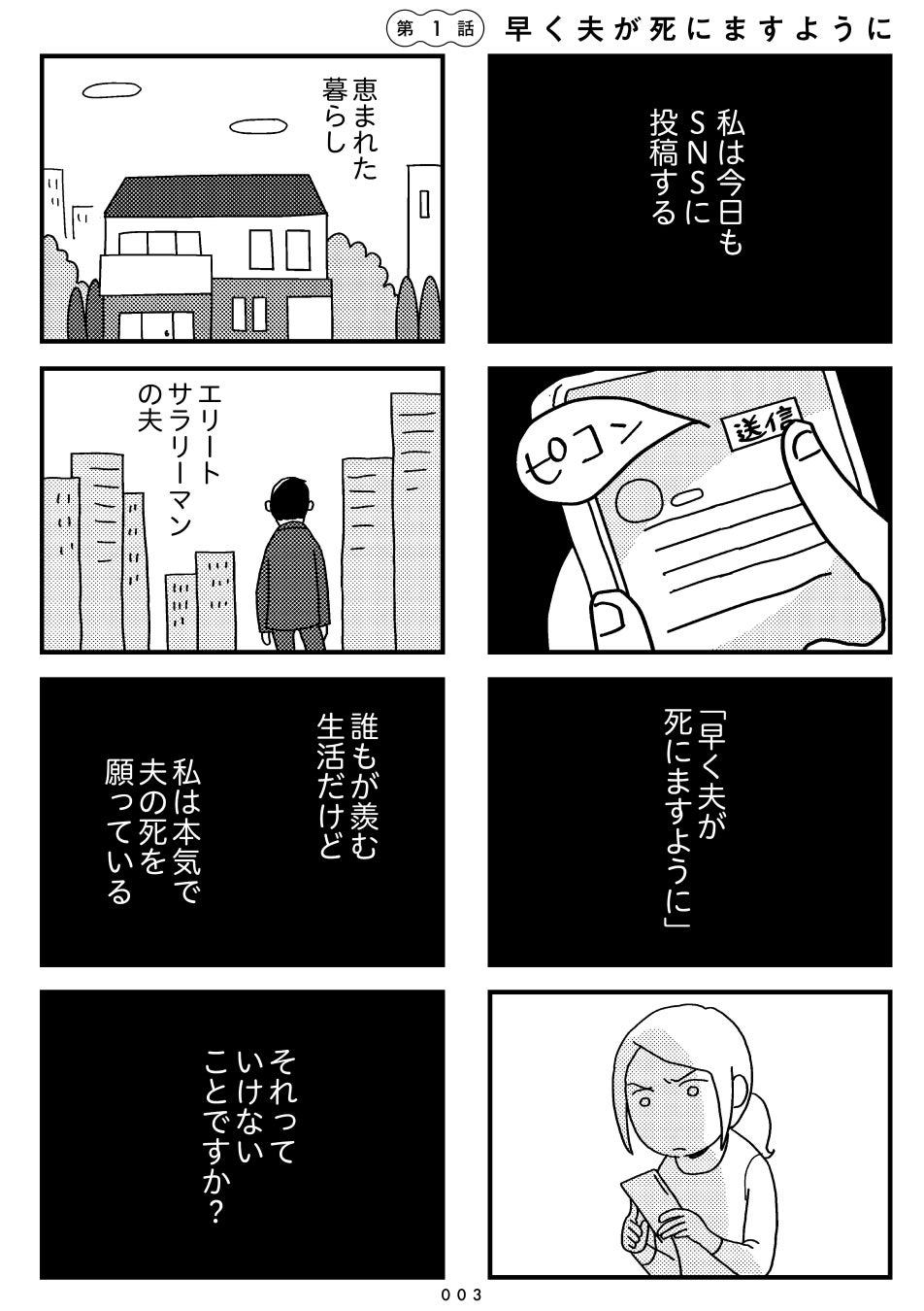 SNSに投稿される「#夫デスブック」に共感する日々を過ごしていたが、ある出来事がきっかけで自分も投稿するようになり…。