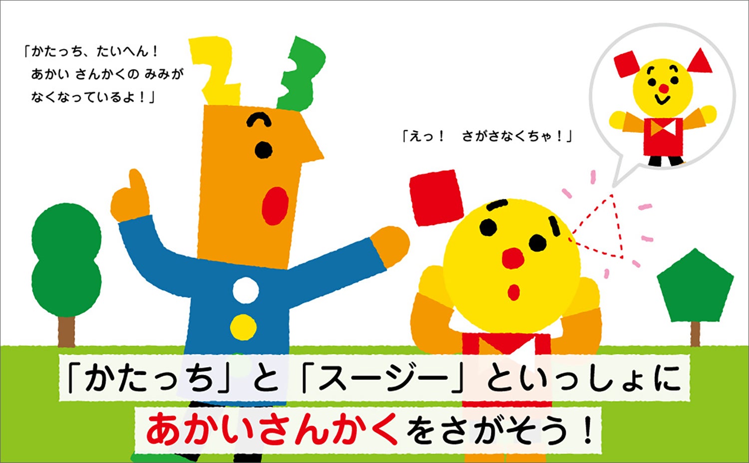 2歳から数と形に夢中に! はじめての算数にぴったりの絵本『あそべるさんすうえほん あかいさんかく ど~こだ?』が登場!