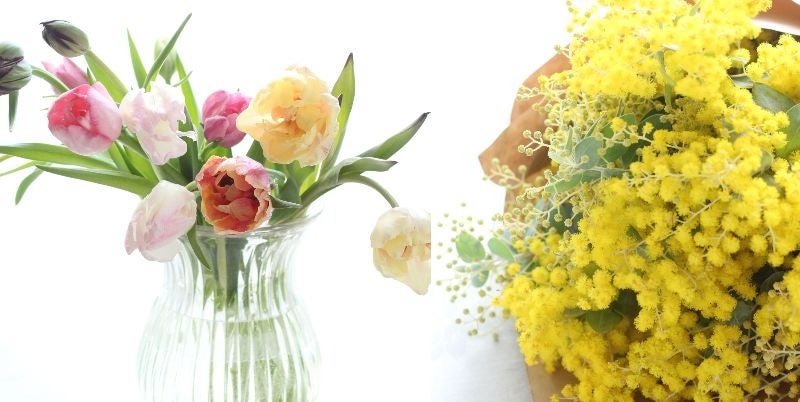 寒さが続くなか、いち早く春を感じられる花といえばチューリップとミモザ。たっぷりと飾れて、ギフトにもぴったりな2商品をご用意しました。