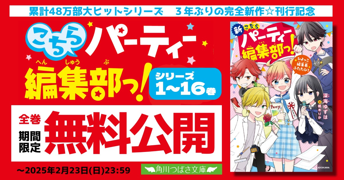 株式会社KADOKAWA(本社:東京都千代田区、取締役 代表執行役社長 CEO:夏野剛)は、大ヒットシリーズ待望の最新刊『新こちらパーティー編集部っ! ひよっこ編集長ふたたび!』を角川つばさBOOKSより2025年2月13日(木)に発売いたします。