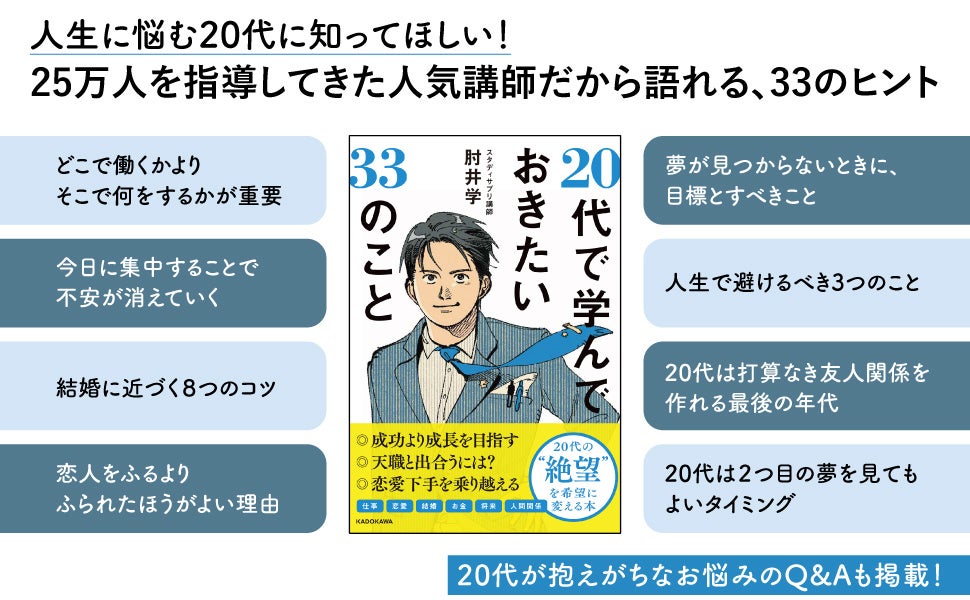 株式会社KADOKAWA(本社:東京都千代田区、取締役 代表執行役社長 CEO:夏野剛、以下KADOKAWA)は、『20代で学んでおきたい33のこと』(著:肘井学)を2025年2月13日(木)に発売いたしました。