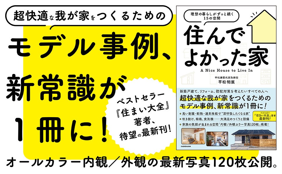 株式会社KADOKAWA(本社:東京都千代田区、取締役 代表執行役社長 CEO:夏野剛)は、2025年1月28日(火)に『住んでよかった家 理想の暮らしがずっと続く15の空間』を発売しました。本書は、登録者数19万人突破の人気YouTubeチャンネル「職人社長の家づくり工務店」発信者・平松明展氏の新刊です。