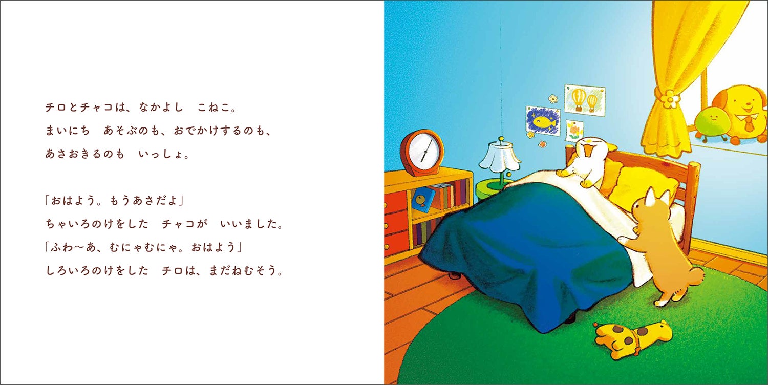 ある日、黄色がだいすきだというチャコを見て、チロは「今日はふたりでいろんなだいすきものをさがしてあそぼうよ」と言いました。