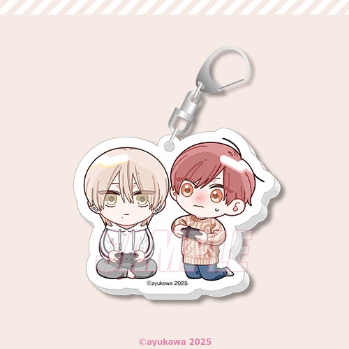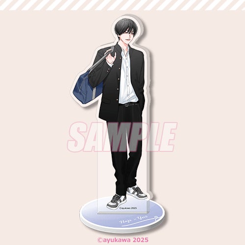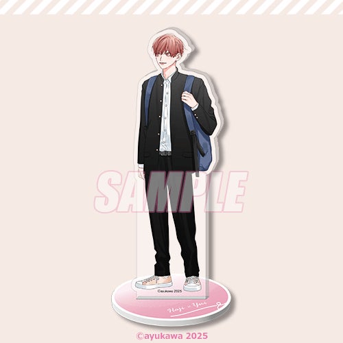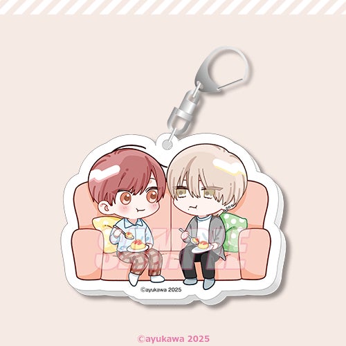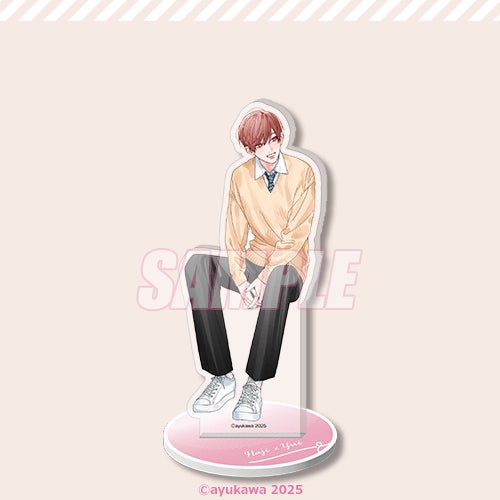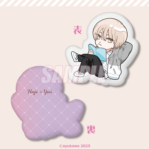 オール描き下ろし!お部屋に飾りたくなるクッションやミニキャラのラブラブな姿が可愛いアクリルキーホルダーなど、ぜひともゲットしたいオリジナルグッズがラインナップ。特に、中学と高校の制服のはじゆいが楽しめるアクリルスタンドは、並べるとまるで2人が見つめ合っているよう…!セットでそろえたくなる、ファン必見のアイテムです。