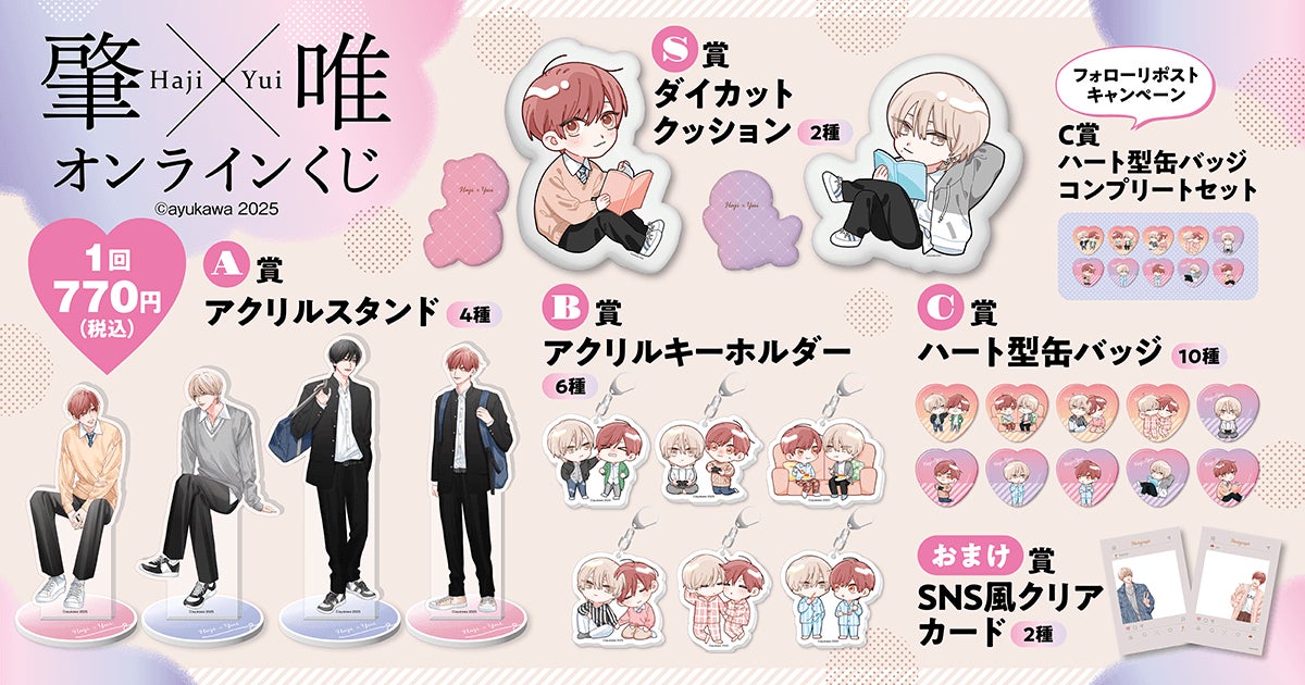 オール描き下ろし! SNSで大人気の幼なじみBLの『肇×唯』がくじ引き堂に登場!