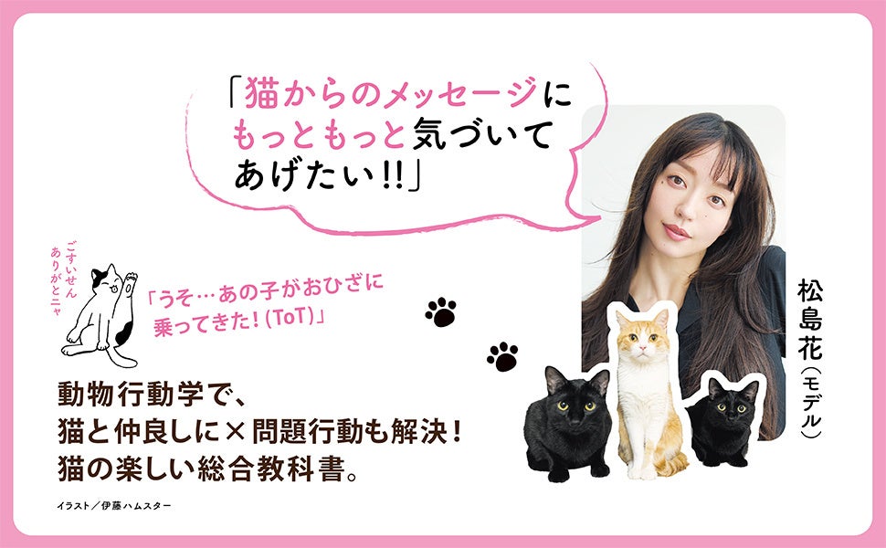 ④ 松島花さん(モデル)がご推薦文を寄せてくださいました。「猫からのメッセージにもっともっと気づいてあげたい!!」