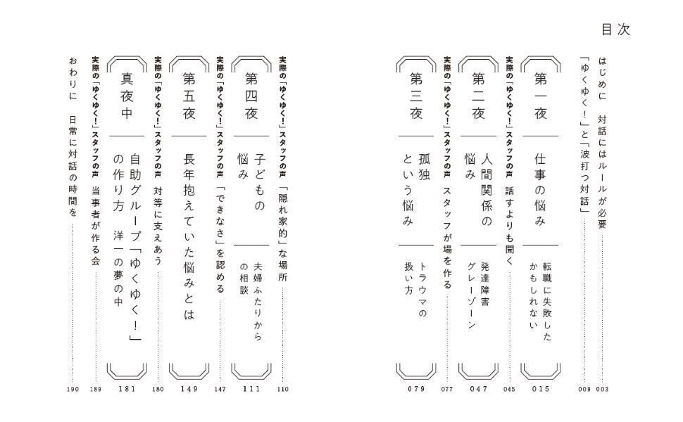 オープンダイアローグ的対話実践を行うための自助グループであり、著者の横道誠氏が立ち上げた。オンライン会議アプリを通じて、毎月対話実践を行っており、ボランティアのスタッフにより運営されている。スタッフか外部からの参加者かに限らず、全員がひとりひとり「安心安全な場を作る」仲間として対話する集まりを目指している。