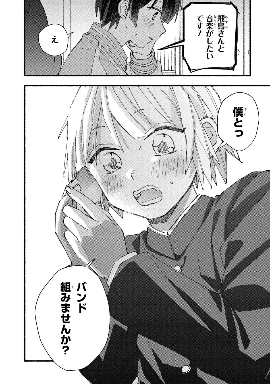 そんなある日、大好きなバンド「ハジマリノハナシ」のライブをきっかけに、姉の友人である花山飛鳥(はなやま あすか)と出会い、楓月の世界は少しずつ変化していく。